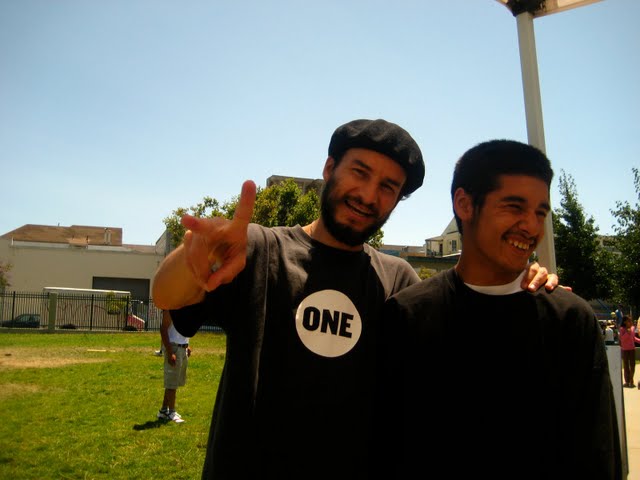 Pancho and Kevin hanging out by the produce in Parque Ninos Unidos